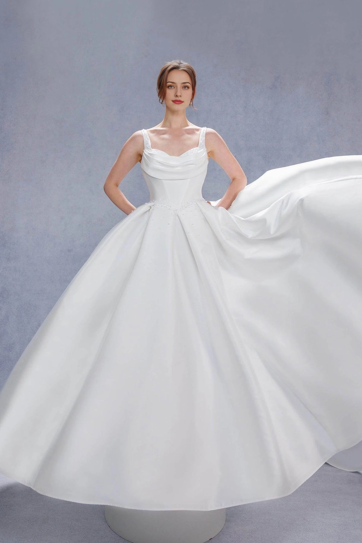 Elegant A-Line Jewel Neck Sleeveless Back Zip Chapel Train mermaid Court Train Mikado Wedding Dress hot sale