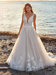 Wedding Dresses Ball Gown V Neck Off Shoulder Spaghetti Strap Chapel Train Chiffon Bridal Gowns With Pleats Ruched - US 2 / UK 8 / EU 32