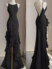 Black Mermaid Beach Wedding Dress With Ruffles Spaghetti Straps Backless Prom Gown