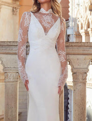 Casual Wedding Dresses Mermaid / Trumpet Detachable Cape V Neck Long Sleeve Floor Length Stretch Crepe Bridal Gowns With Appliques - US 2 / UK 8 / EU 32