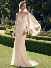 Casual Wedding Dresses Mermaid / Trumpet Off Shoulder Long Sleeve Sweep / Brush Train Chantilly Lace Bridal Gowns - US 2 / UK 8 / EU 32