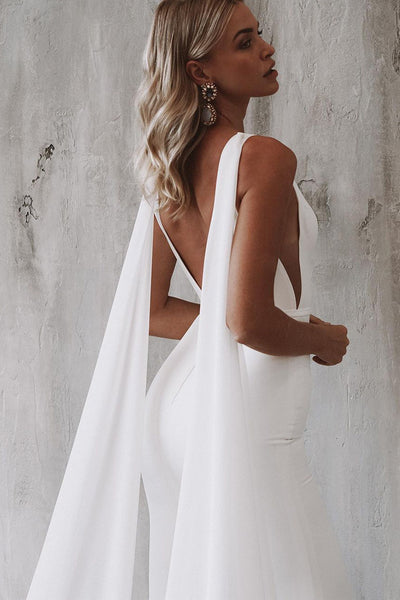 Elegant Mermaid V Neck Elastic Satin Long Wedding Dresses - US 2 / UK 8 / EU 32