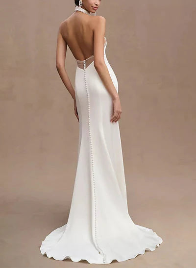 Halter Sleeveless Silk Like Satin Sheath Fitted Wedding Dresses Split Front - US 2 / UK 8 / EU 32