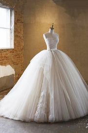 Light Champagne Ball Gown Tulle Sweetheart Long Prom Dress Beautiful Formal Dress Wedding Dress - US 2 / UK 8 / EU 32
