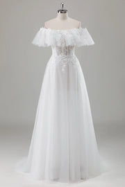 Off the Shoulder A-Line Wedding Dress with Appliqued Lace
