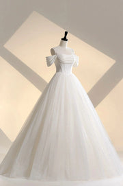 Unique Off the Shoulder Sparkly Tulle Wedding Dress