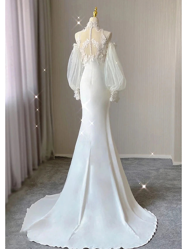 Wedding Dresses Mermaid / Trumpet Halter Neck Long Sleeve Chapel Train Lace Bridal Gowns With Solid Color - US 2 / UK 8 / EU 32