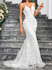 Wedding Dresses Mermaid / Trumpet V Neck Sleeveless Sweep / Brush Train Tulle Bridal Gowns With Solid Color - US 2 / UK 8 / EU 32