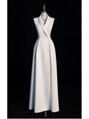 Wedding Dresses Tuxedo Dress A-Line V Neck Sleeveless Floor Length Taffeta Bridal Gowns With Solid Color - US 2 / UK 8 / EU 32