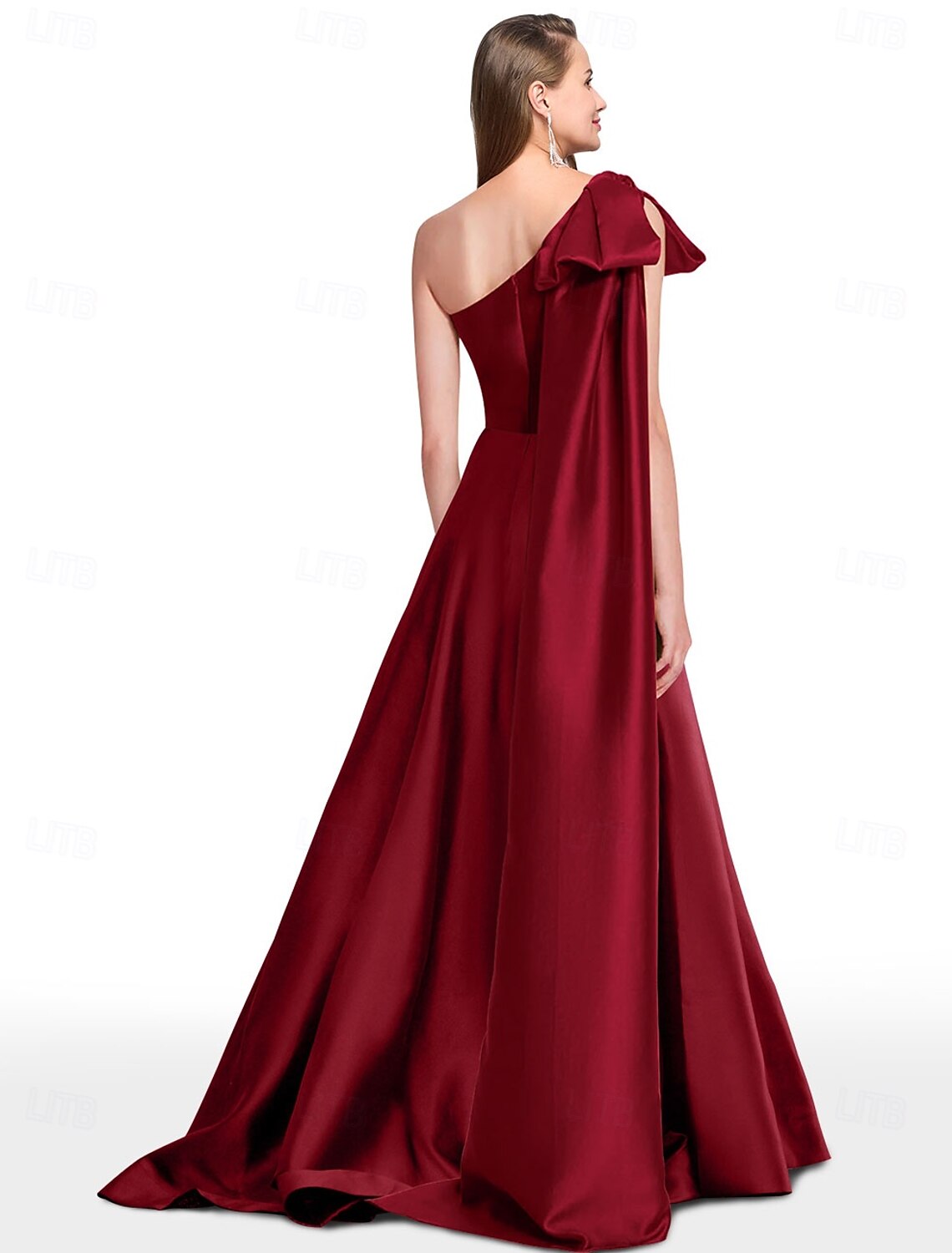 A-Line Evening Gown Elegant Dress Formal Floor Length Sleeveless One Shoulder Satin with Shouder Flower - Burgundy / US 2 / UK 8 / EU 32