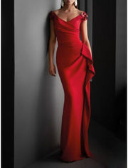 Sheath Evening Gown Sexy Dress Formal Evening Sweep / Brush Train Short Sleeve V Neck Fall Wedding Guest Jersey with Draping - US 2 / UK 8 / EU 32