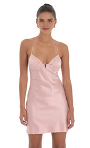 Blush Pink Satin Homecoming Dress with Thin Spaghetti Straps Sweetheart Neckline Bodycon Fit - US 2 / UK 8 / EU 32
