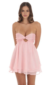Blush Pink Strapless Chiffon Homecoming Dresses with Cut Out Detail Perfect for Homecoming School Dances