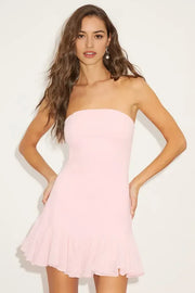 Blush Pink Strapless Homecoming Dress Flounce Hem Bodycon Fit Dance the Night Away in Feminine Grace - US 2 / UK 8 / EU 32