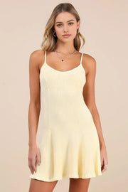 Butter Yellow Ribbed Homecoming Dress Spaghetti Straps Flowy Hem Radiate Youthful Charm at Your School Dance - US 2 / UK 8 / EU 32