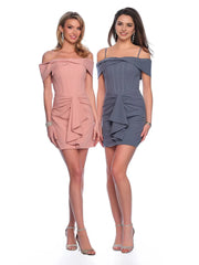 Chic Blush Pink Off - Shoulder Homecoming Dress with Twisted Neckline Corset Style Bodice Ruffled Detail Perfect for Prom Nights - US 2 / UK 8 / EU 32