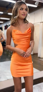 Chic Orange Satin Spaghetti Strap Bodycon Gown for Stylish Sheath Homecoming Dresses Mini Party Gown