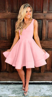 cute pink homecoming dress satin v neck - US 2 / UK 8 / EU 32
