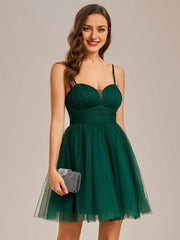 Dreamy Spaghetti Strap Tulle Short Pleated Homecoming Dress - Dark Green / US 2 / UK 8 / EU 32