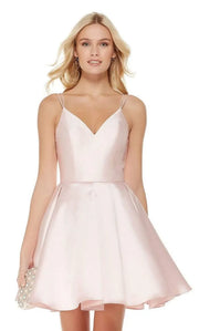 Elegant Light Pink Satin Homecoming Dress with Spaghetti Straps V Neckline Perfect for Prom Nights - US 2 / UK 8 / EU 32