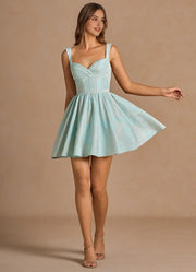 Elegant Mint Green Homecoming Dress Square Neck Corset Bodice Flared Skirt for a Polished Timeless Vibe - US 2 / UK 8 / EU 32