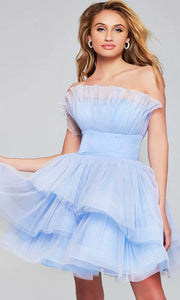 Elegant Off - Shoulder Light Blue Tulle Homecoming Dress with Tiered Skirt - Perfect for School Dances