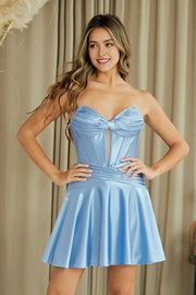 Elegant Strapless Green Satin Homecoming Dress with Bow Detail Corset Bodice Flared Skirt for School Dance - Periwinkle / US 2 / UK 8 / EU 32