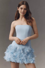 Elegant Strapless Light Blue Homecoming Dress with 3D Floral Ruffle Skirt Perfect for Memorable School Dances - US 2 / UK 8 / EU 32
