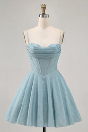 Grey Blue Corset A Line Spaghetti Straps Short Homecoming Dress