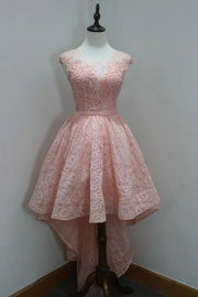 High Low Round Neck Sleeveless Homecoming A Line Lace Party Dress