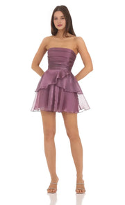 Lavender Organza Strapless Homecoming Dress Tiered Ruffle Skirt Ruched Bodice Perfect for Enchanting School Dances Fairytale Reunion Memories - US 2 / UK 8 / EU 32