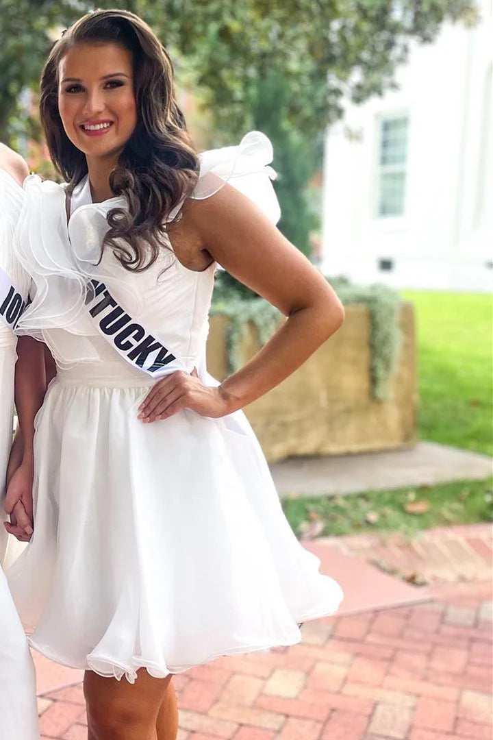 Light Blue Organza Ruffles A-Line Short Party Dress