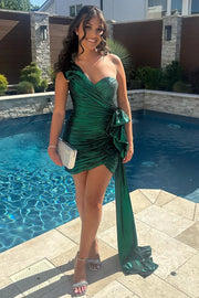 Metallic Green One-Shoulder Ruched Homecoming Dress