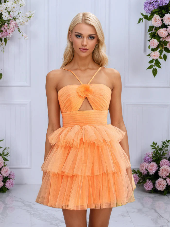 Mist Sleeveless Tulle Layers Homecoming Dress - Coral / US 2 / UK 8 / EU 32