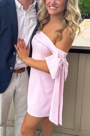 Off-Shoulder Satin Short Homecoming Cocktail Dress with Bow