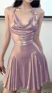 Step into the spotlight at homecoming with this show - stopping metallic pink dress! Featuring a cowl neckline that adds a touch of elegant allure, delicate spaghetti straps for a feminine vibe, and a fit - and - flare silhouette that flatters every curve, it’s designed to make you shine. The shimmering metallic fabric catches the light with every move, ensuring you’ll be the center of attention on the dance floor. Whether you’re twirling the night away or posing for photos, this mini gown blends glamour and comfort seamlessly. Perfect for creating unforgettable memories at your school’s homecoming celebration, it’s a must - have for anyone wanting to make a sparkling, stylish statement.