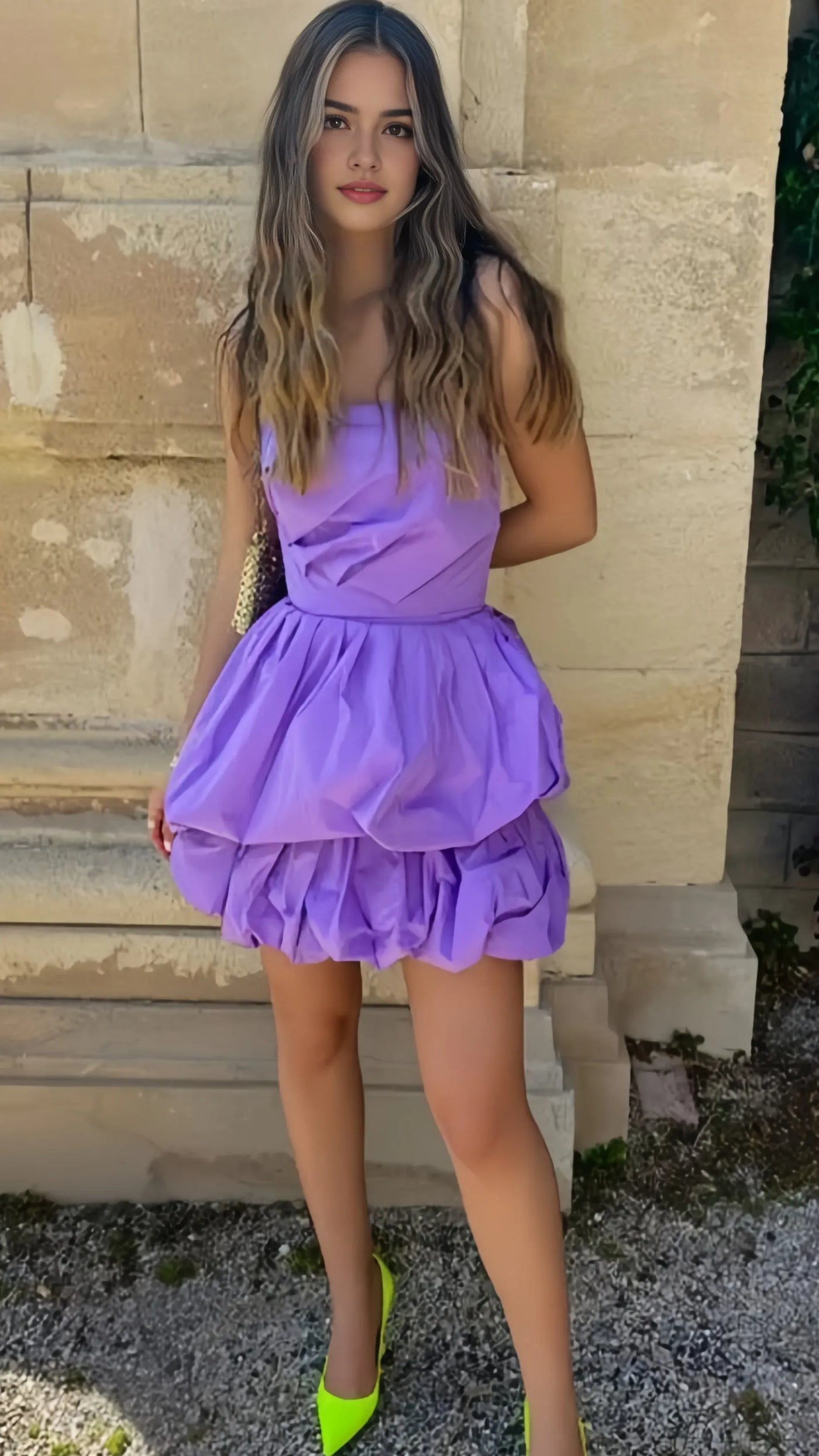Make a whimsical statement at homecoming with this lavender strapless dress! Its voluminous, tiered puff - ball skirt brings playful charm, while the structured strapless bodice adds elegant sophistication. Crafted for comfort and style, it’s perfect for twirling on the dance floor or posing for memorable photos. The soft lavender hue and romantic silhouette ensure you’ll stand out with a dreamy, feminine flair.
