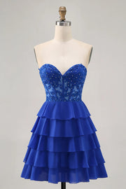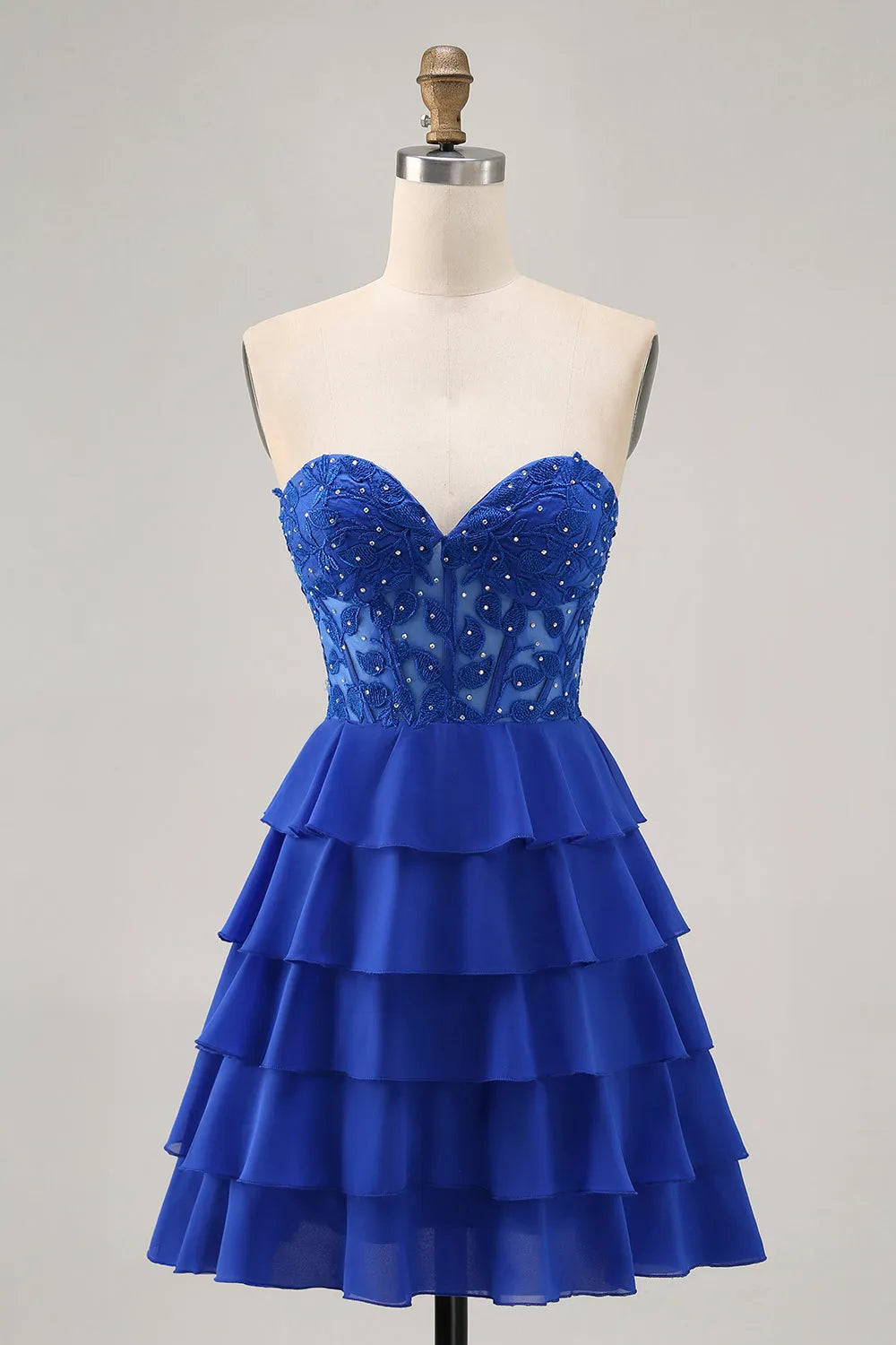 Royal Blue Corset Sweetheart Tiered Short Homecoming Dress