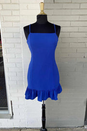 Royal Blue Straps Ruffled Mini Party Dress - Royal Blue / US 2 / UK 8 / EU 32