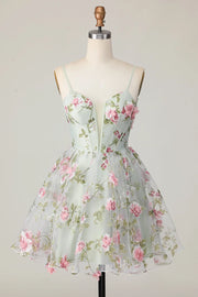 Sage Flower Corset Spaghetti Straps Short Homecoming Dress