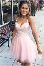 Sexy V-neck Short Pink Spaghetti Party Dress Backless Homecoming Gown