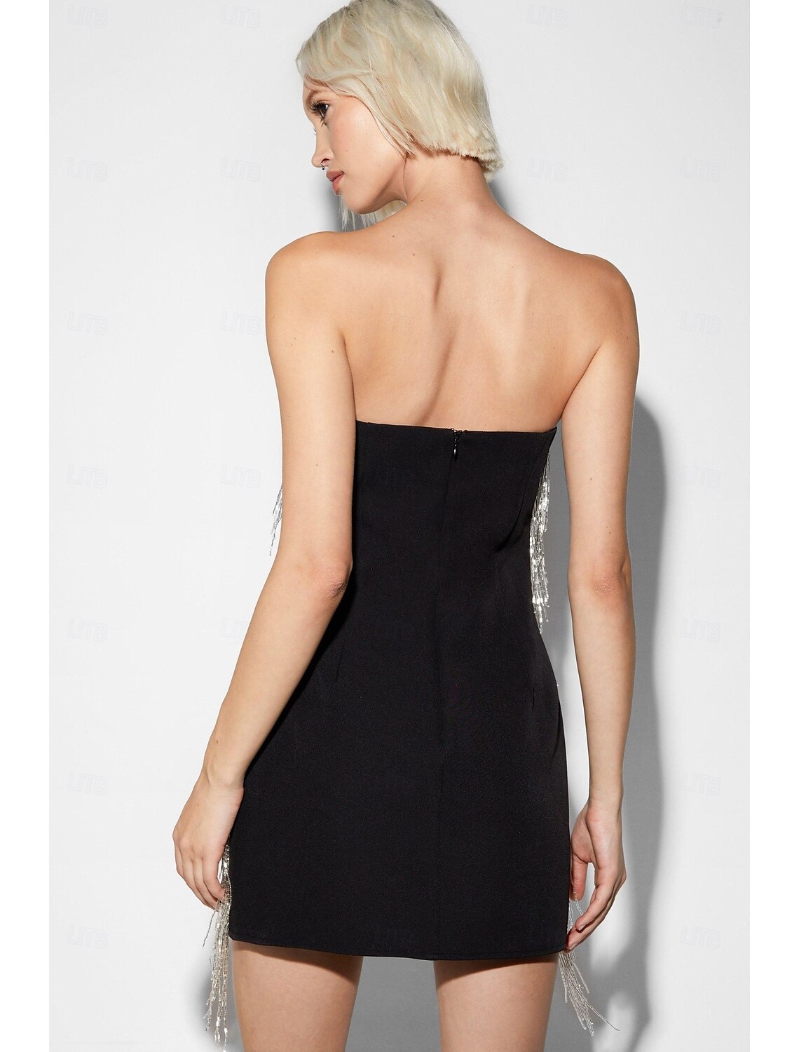 Sheath Sequin Cocktail Dresses Party Dress Homecoming Dress Carnival Party Wear Short Mini Sleeveless Strapless Spandex with Glitter Tassel dress to impress - US 2 / UK 8 / EU 32