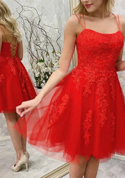 Short/Mini A-line Bateau Lace Tulle Homecoming Dress With Beading