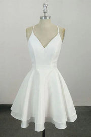 Simple V Neck Homecoming with Lace Back A Line Short Party Dresses