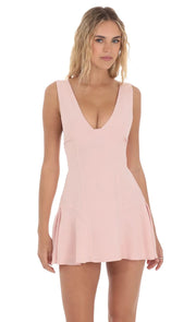 Sophisticated Sleeveless Homecoming Dress in Blush Pink Plunging V Structured Fit Flared Skirt Timeless Charm for School Galas - US 2 / UK 8 / EU 32