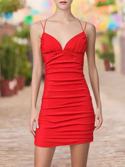 Spaghetti-Strap Deep V-Neck Sleeveless Short/Mini Party Dance Cocktail Homecoming Dress
