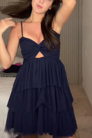 Spaghetti Straps V-Neck Keyhole Layered Tulle Homecoming Dress - US 2 / UK 8 / EU 32