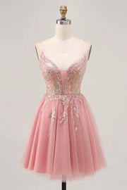 Sparkly Blush Beaded Tulle A Line Short Homecoming Dress