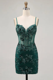 Sparkly Dark Green Corset Tight Short Homecoming Dress with Sequins