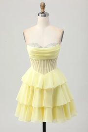 Sparkly Yellow Ruffled Corset Sweetheart Short Homecoming Dress with Beading